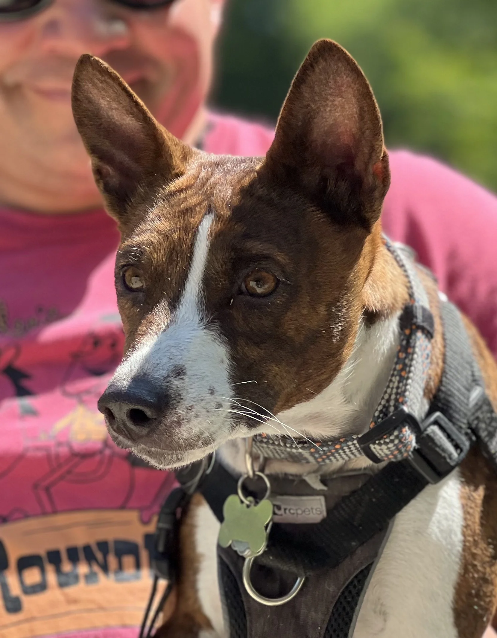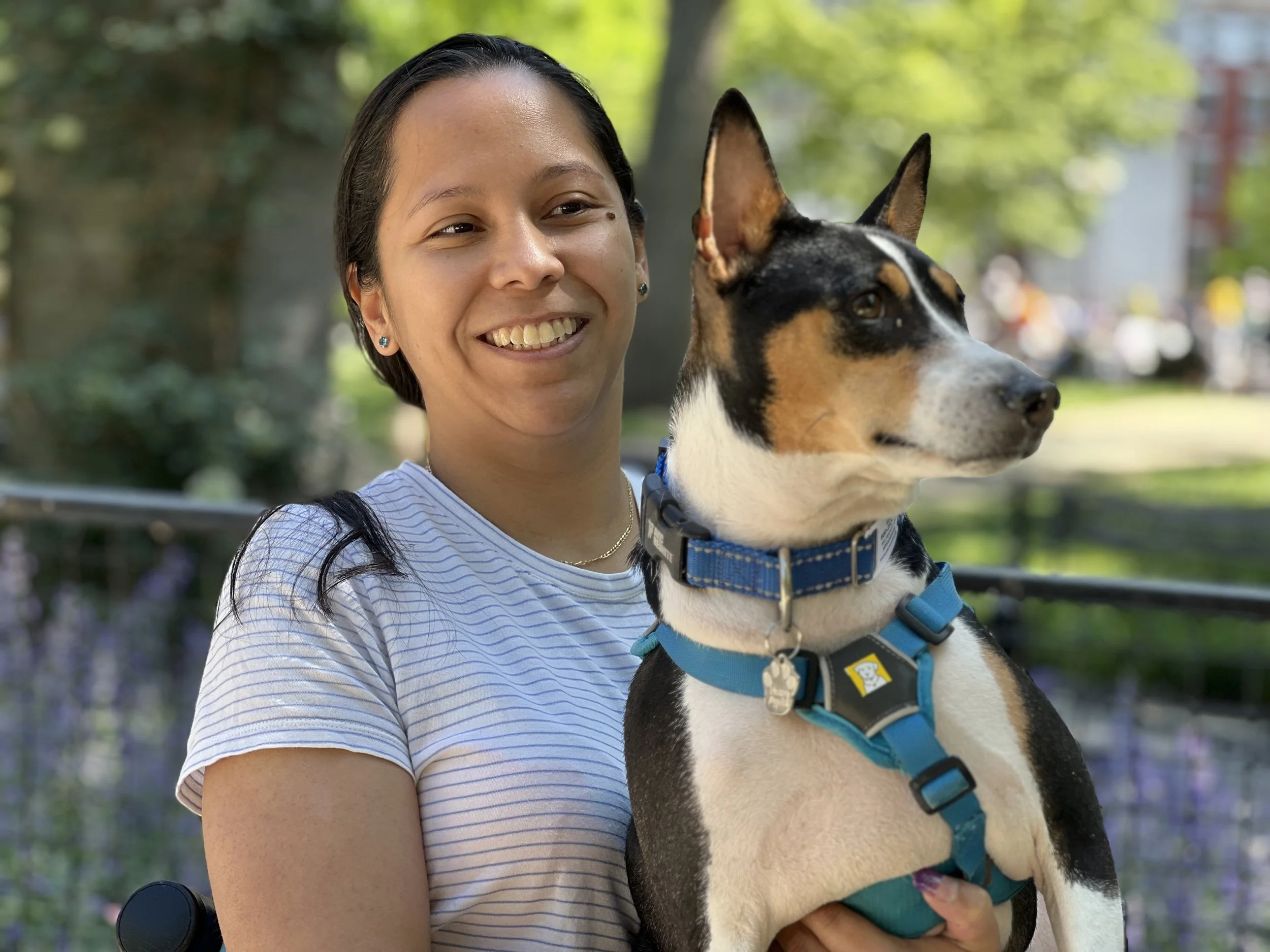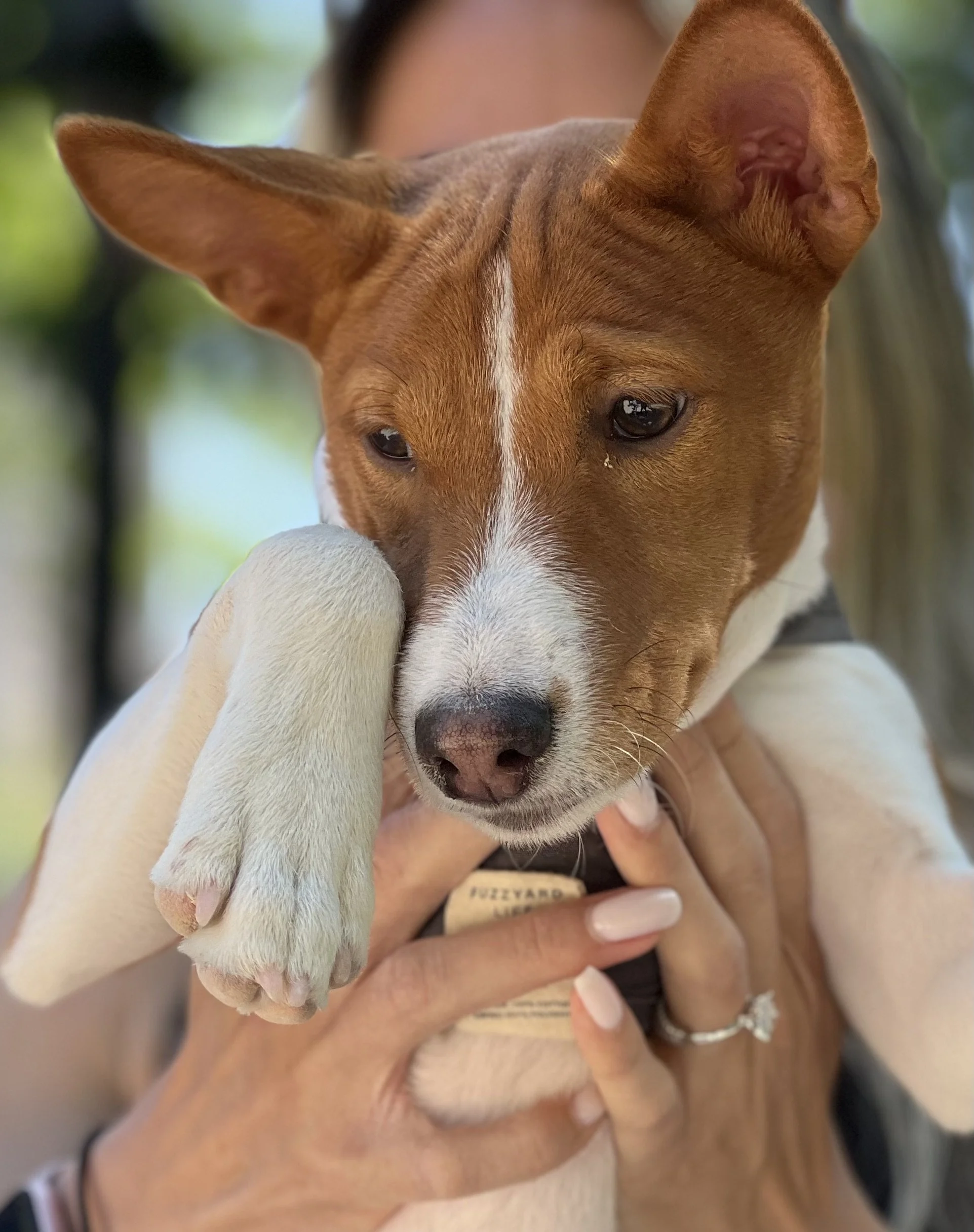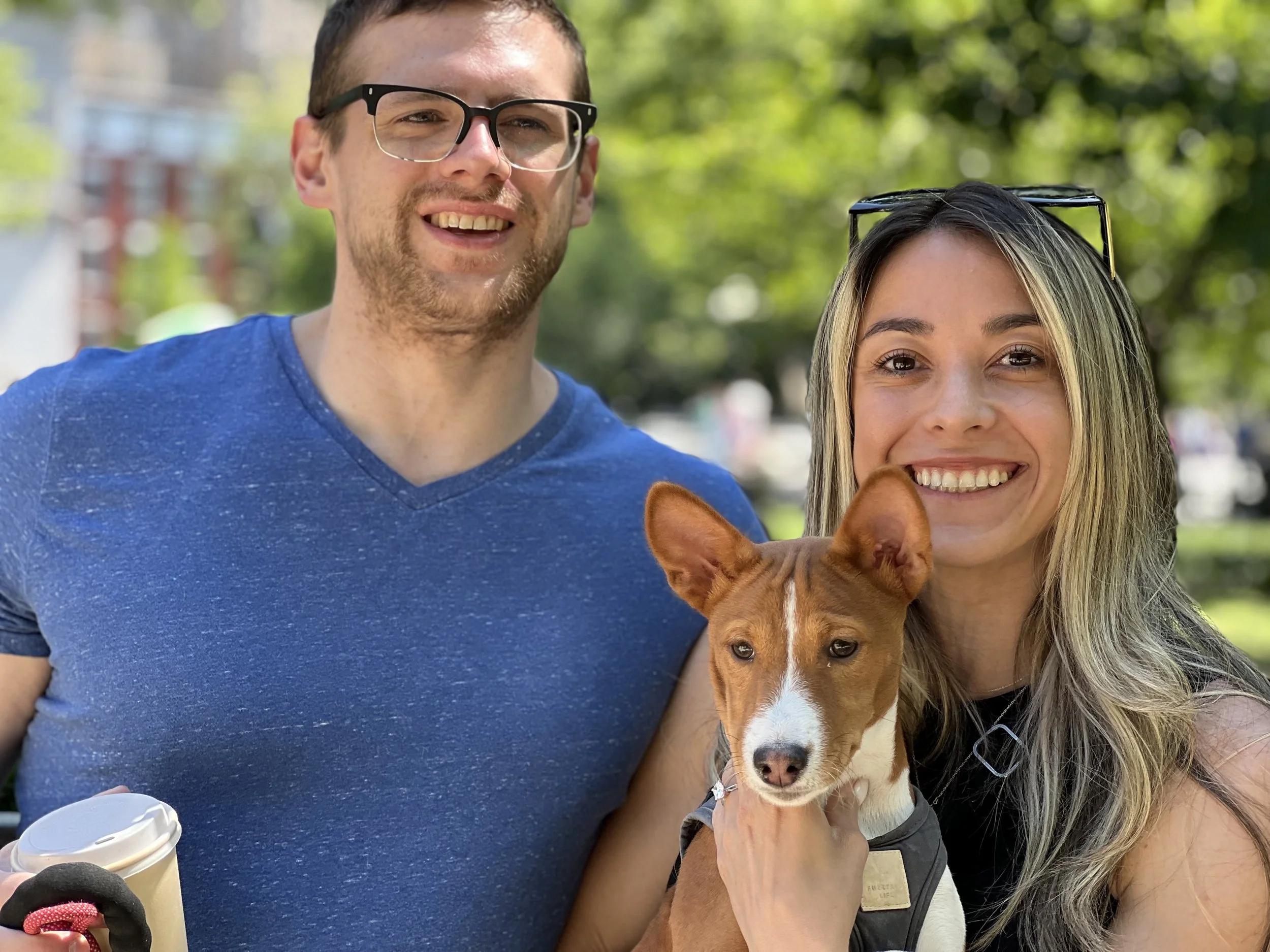 Seven basenjis gathered on a beautiful Mother’s Day morning in New York City’s Washington Square Park. No premieres today. The veterans were newcomer puppy Arnold (male, five-months-old,) Roo (female, yearling,) Pepper (female, two-years-old,) housemates Lulu (female, two-years-old,) and Dexter (male, two-years-old,) Dante (male, five-years-old,) and Kepler (male, eight-years-old.) Starting temperature: 65°F|18.3°C