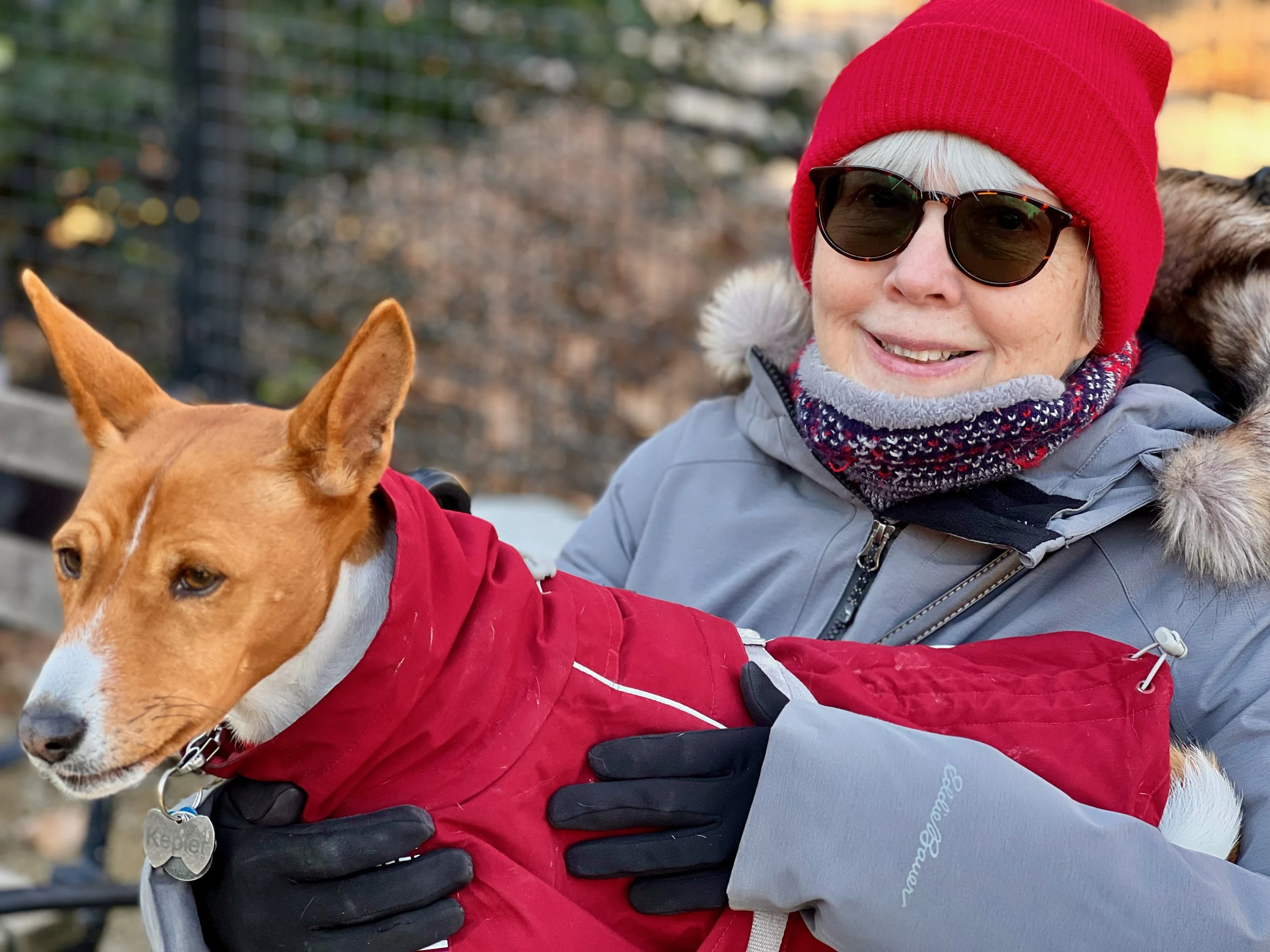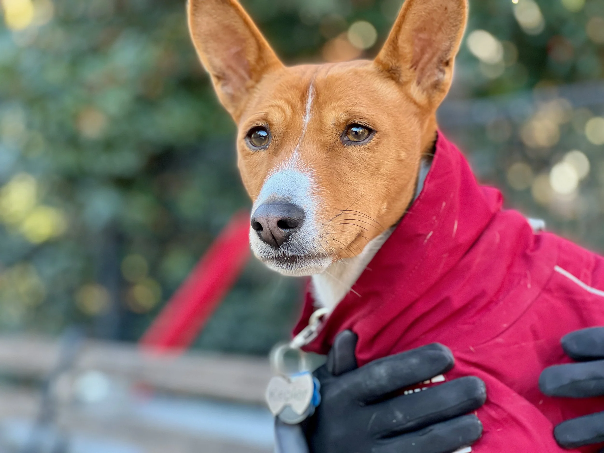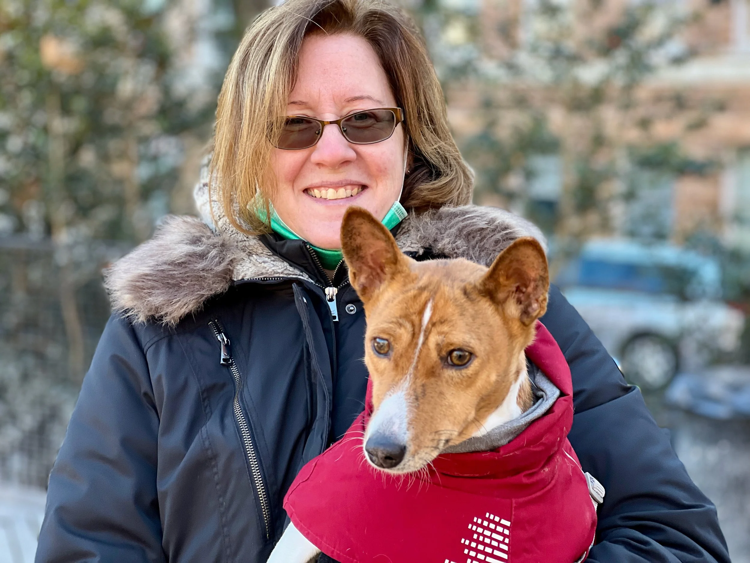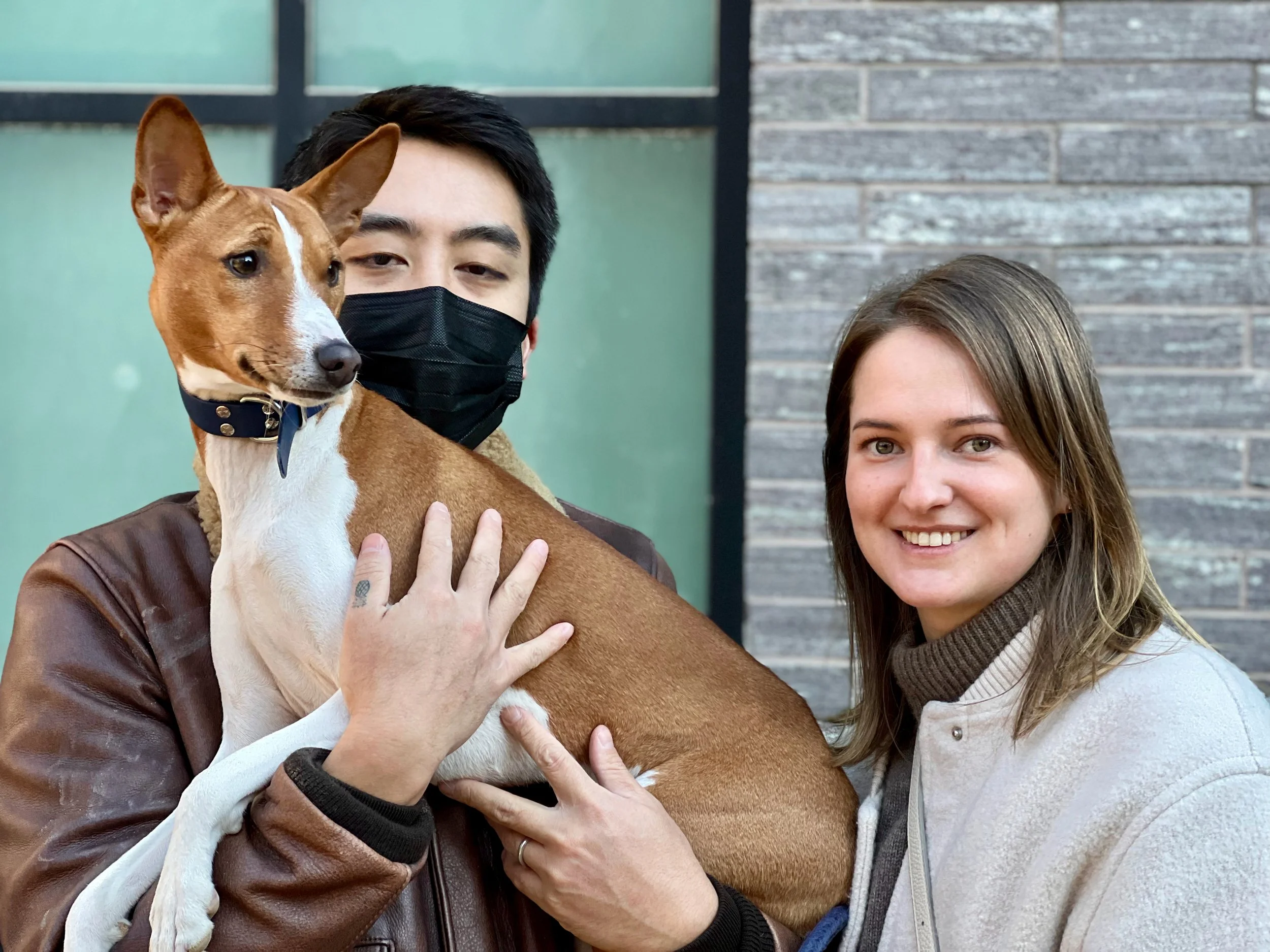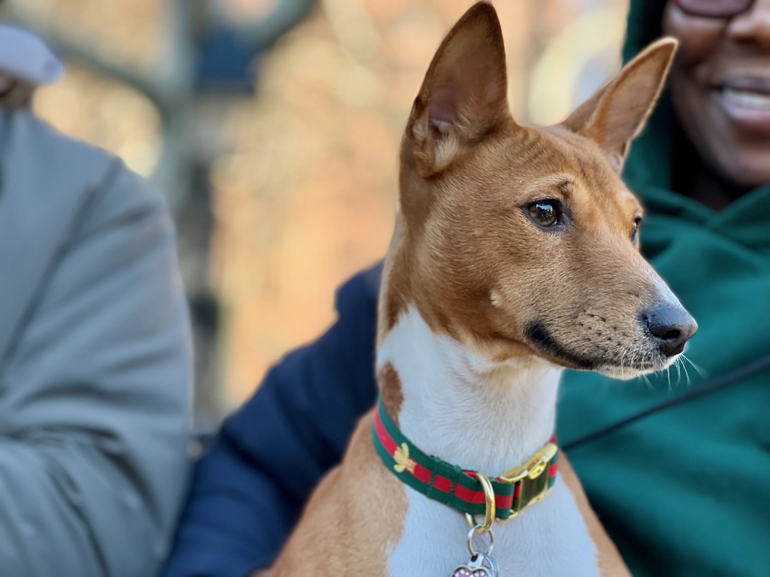 Five basenjis gathered for the last meetup of 2021 in Washington Square Park in New York City.