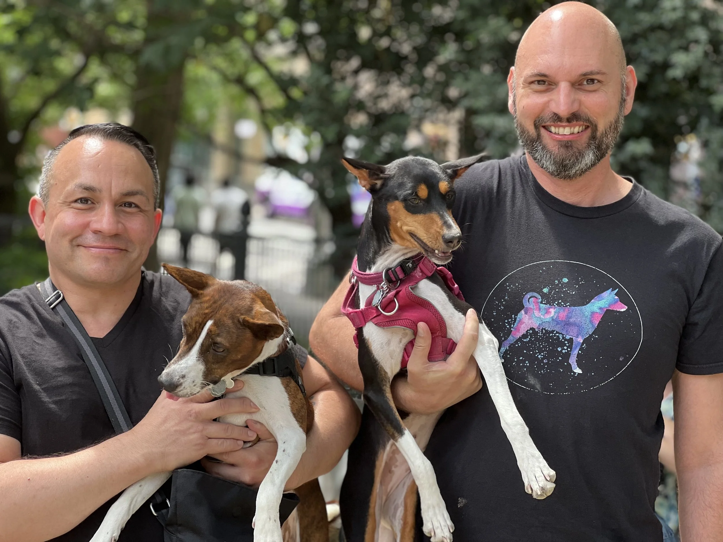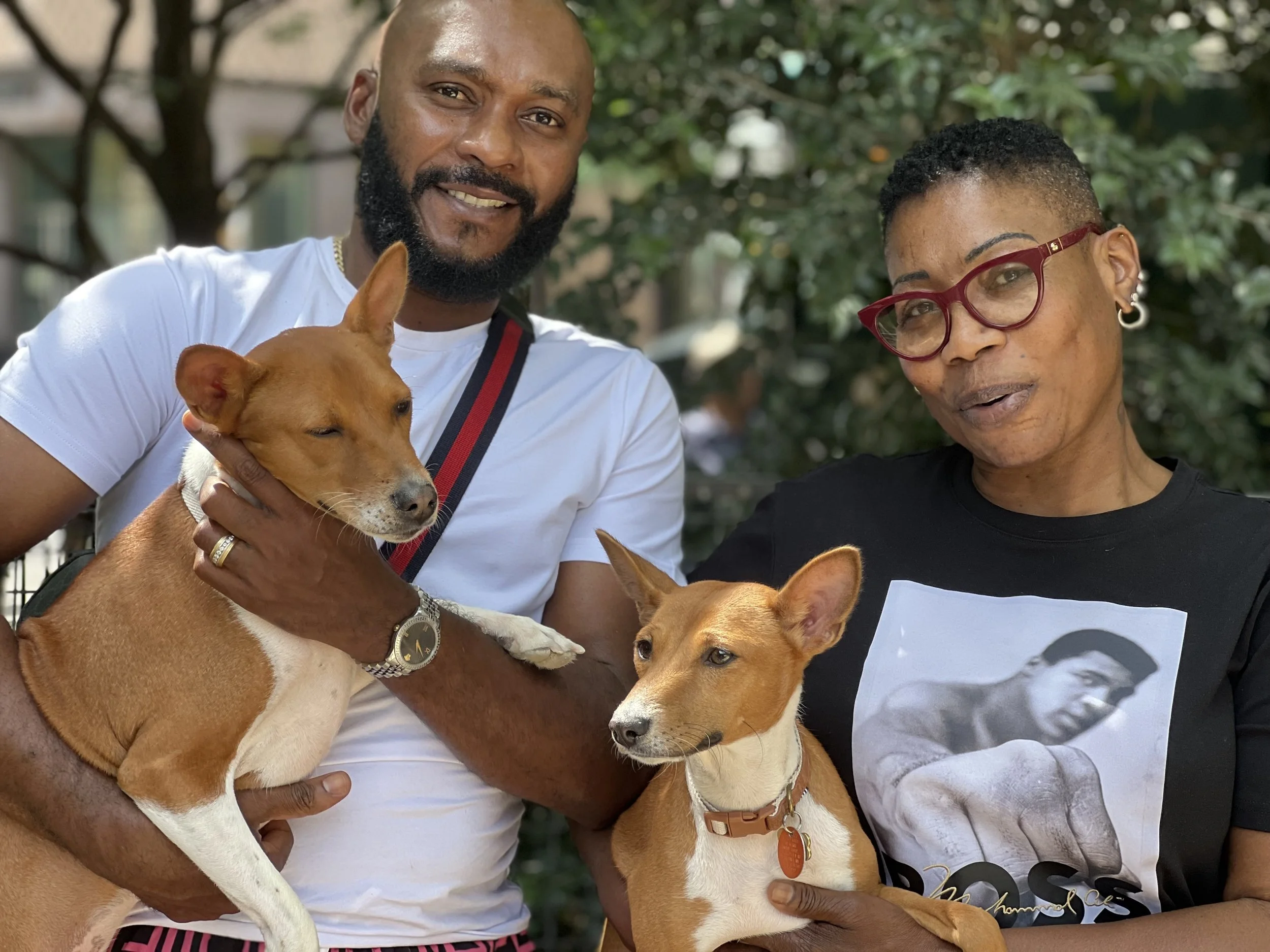 Fourteen basenjis gathered for an Independence Day weekend run in Washington Square Park in New York City.
