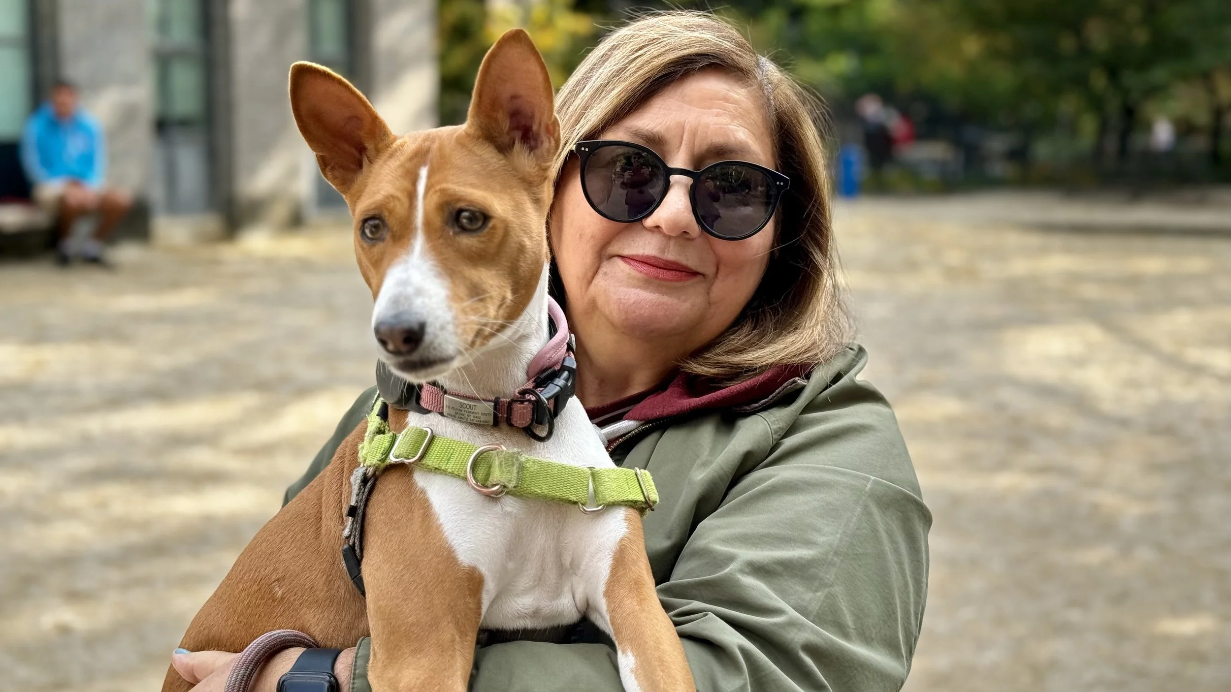 Five basenjis gathered on a beautiful November morning in Washington Square Park in New York City. Today’s stars were Dante (male, five-years-old,) Boulder (male, ten-months-old,) Gaia (female, yearling,) singer Scout (female (six-years-old,) and Kepler (male, nine-years-old.) Starting temperature: 56°F|13.3°C