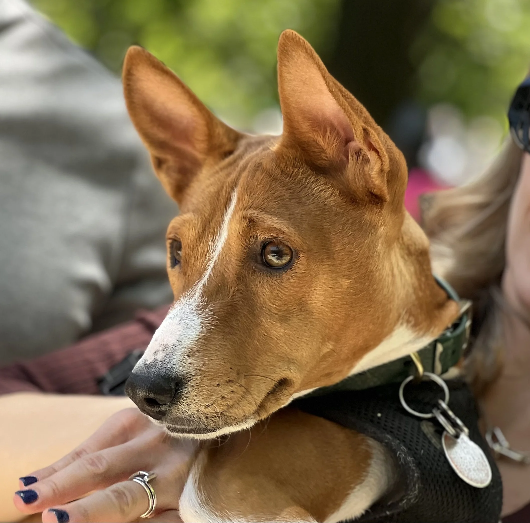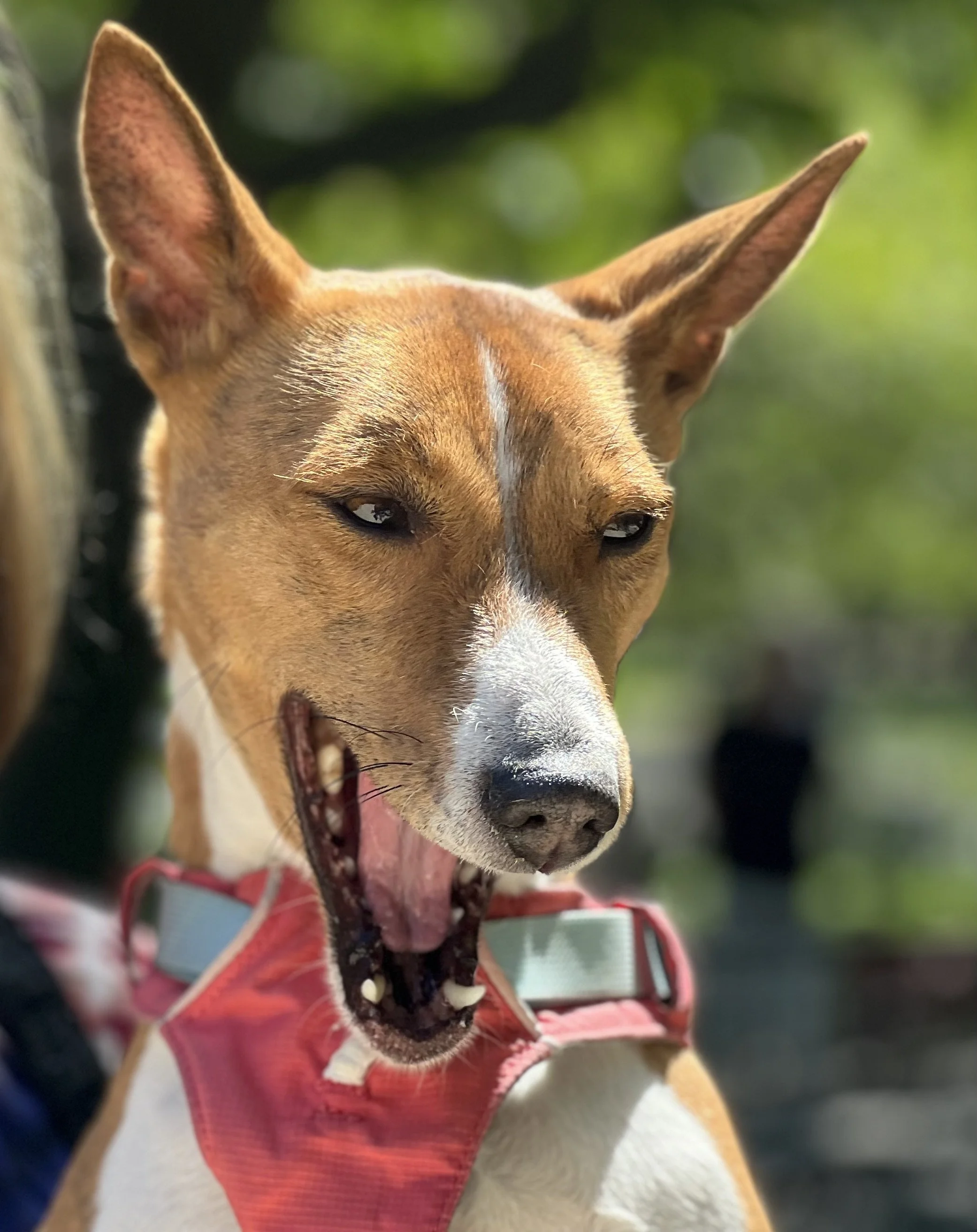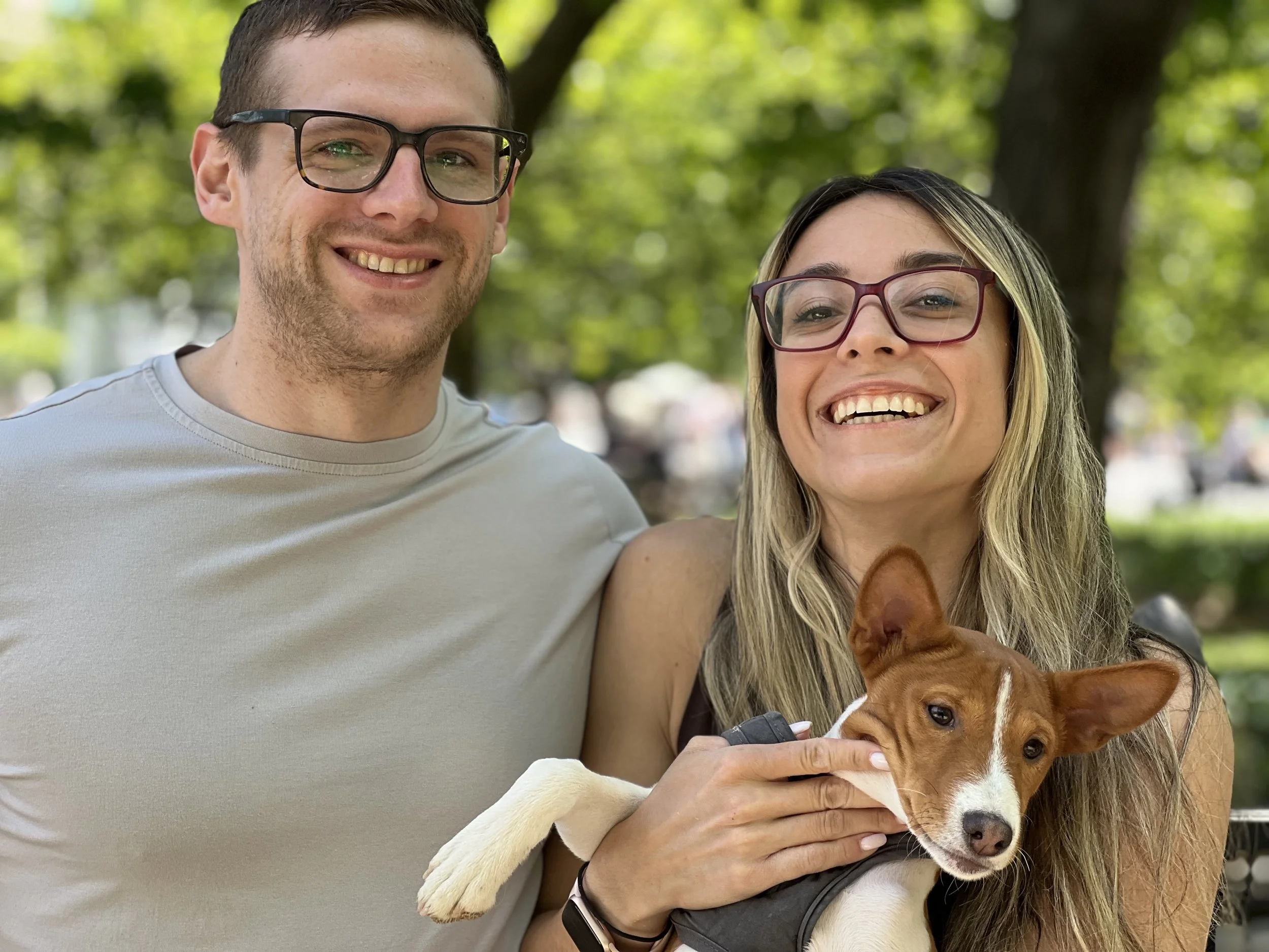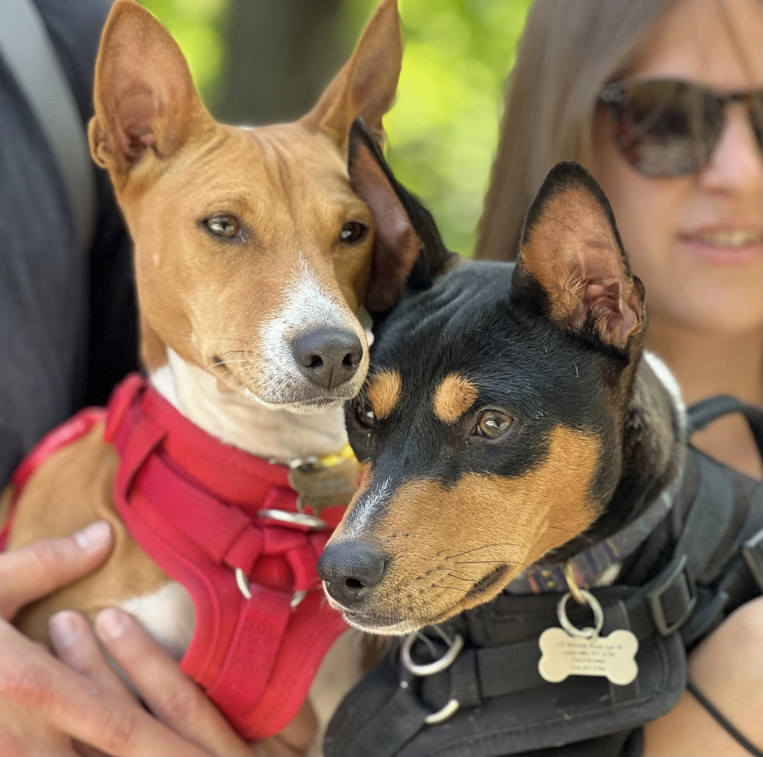 The first weekend in May brought beautiful sunny weather, one dozen basenjis, and the premiere of puppy Hudson. There was lots of action in New York City’s Washington Square Park. Hudson (male, five-months-old,) came with his housemate Harper (female, ten-years-old, today’s senior.) They were joined by puppy Arnold (male, four-months-old,) Revolver (male, eleven-months-old,) with housemate Abbey (female, two-years-old,) Gaia (female, yearling,) Uni (female, yearling,) Zuri (female, two-years-old,) with housemate Zion (male, three-years-old,) Mia (female, six-years-old,) and Kepler (male, eight-years-old.) Starting temperature: 65°F|18.3°C