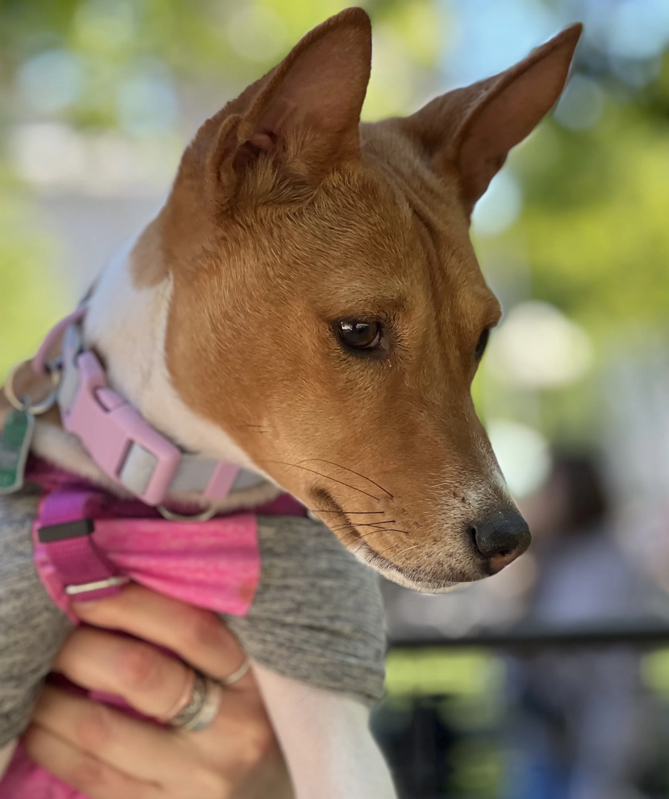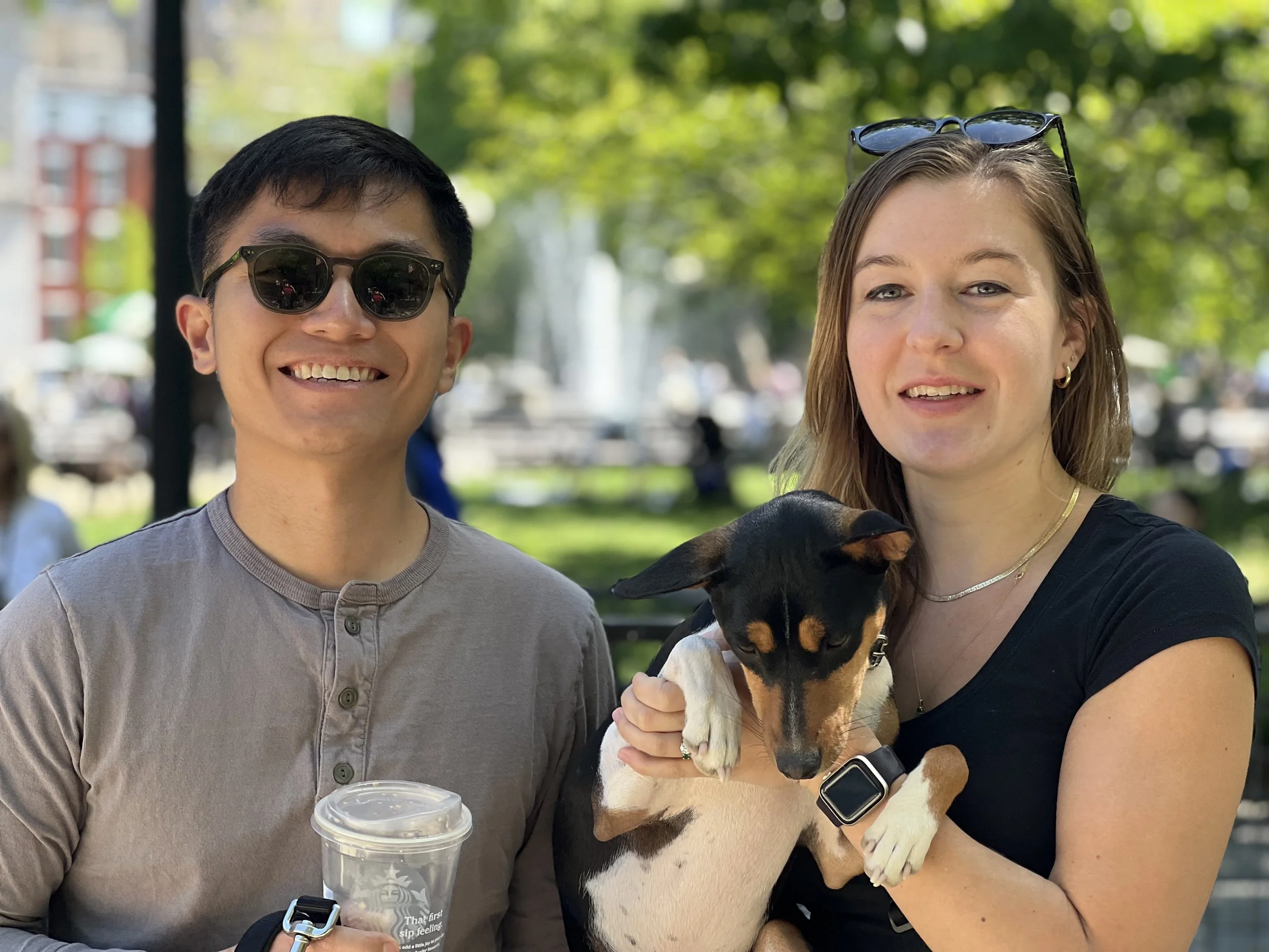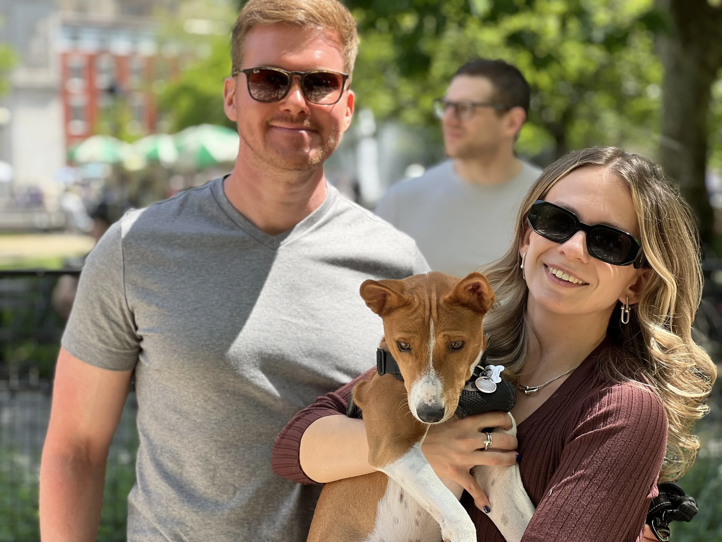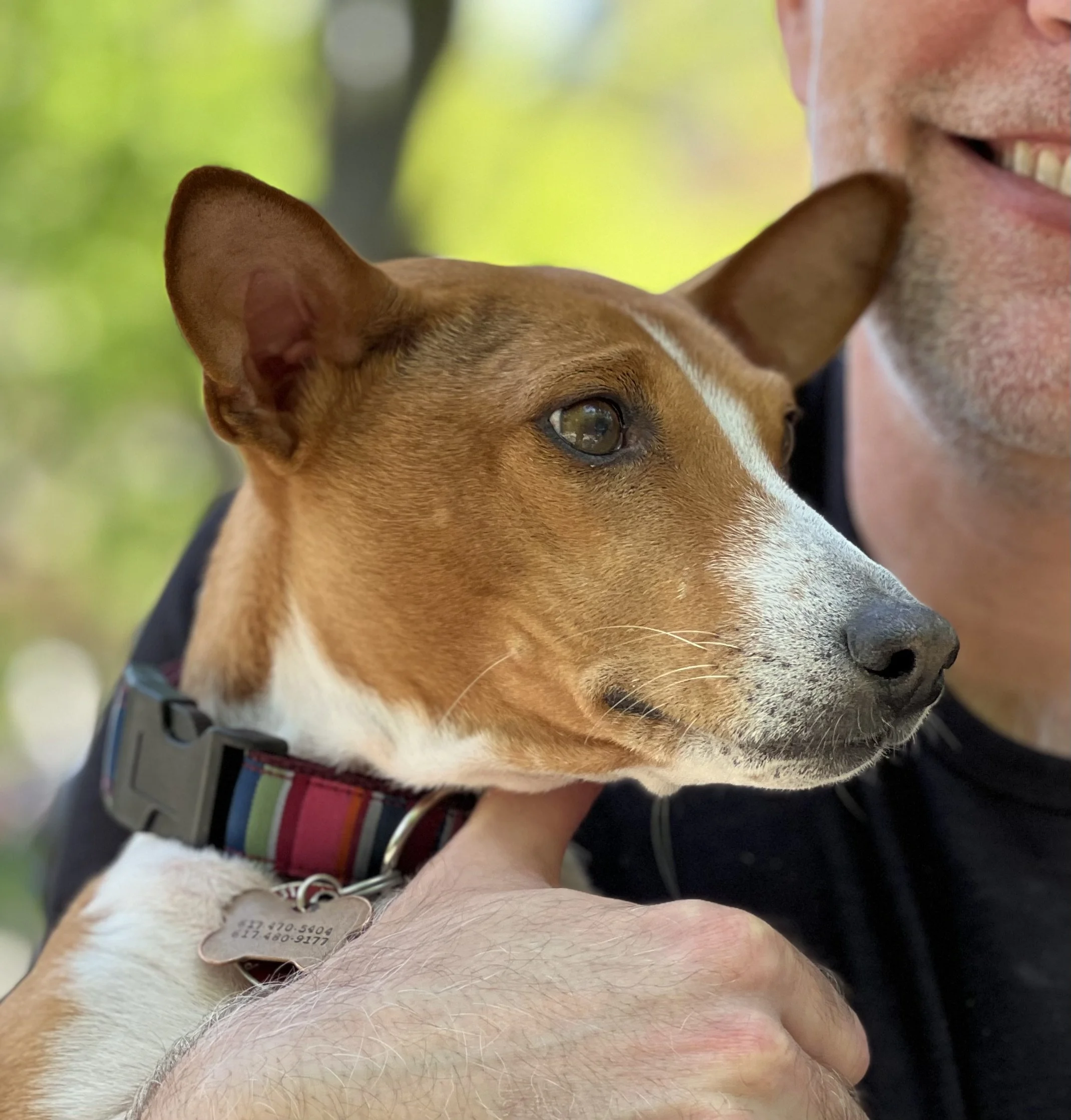 The first weekend in May brought beautiful sunny weather, one dozen basenjis, and the premiere of puppy Hudson. There was lots of action in New York City’s Washington Square Park. Hudson (male, five-months-old,) came with his housemate Harper (female, ten-years-old, today’s senior.) They were joined by puppy Arnold (male, four-months-old,) Revolver (male, eleven-months-old,) with housemate Abbey (female, two-years-old,) Gaia (female, yearling,) Uni (female, yearling,) Zuri (female, two-years-old,) with housemate Zion (male, three-years-old,) Mia (female, six-years-old,) and Kepler (male, eight-years-old.) Starting temperature: 65°F|18.3°C